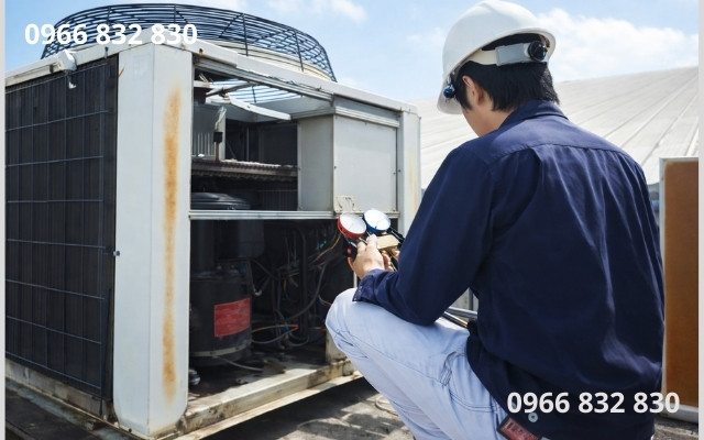 - Phân thợ có kinh nghiệm tháo panel, kiểm tra ống gió, hàn ống đồng; chuẩn bị bộ dụng cụ an toàn, máy hút, máy dò rò rỉ.